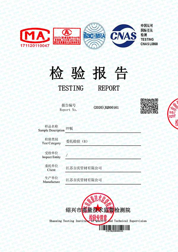 江蘇吉慶管材集團有限公司創(chuàng)辦于2010年2月,是pp管,pp管材,pp管件,pp風管,frpp管,frpp管材,pph管,pph管材,pph管件,pph風管,pvdf管,pvdf管材,pp儲罐,pp板材的專業(yè)化生產企業(yè)。公司占地30余畝,擁有各類資產8000余萬元,專業(yè)技術人員20余人,管材生產線10條,管件生產線11條,具備了10000余噸各類防腐塑料制品的年生產能力。公司通過了ISO9001-2000質量體系認證,同時被評為AAA信用單位,2018年公司被評為高新技術企業(yè),此后陸續(xù)取得安全生產管理證書等榮譽。公司位于水上花園城市----江蘇省揚中市八橋鎮永福路18號,交通便捷,可直接導航至公司園區(qū)內。公司全體員工將以高度的敬業(yè)精神,嚴格的質量控制理念和科學的管理方法,及時周到的服務,竭力為我國塑料管道在各領域的推廣和應用作出更大的貢獻!
